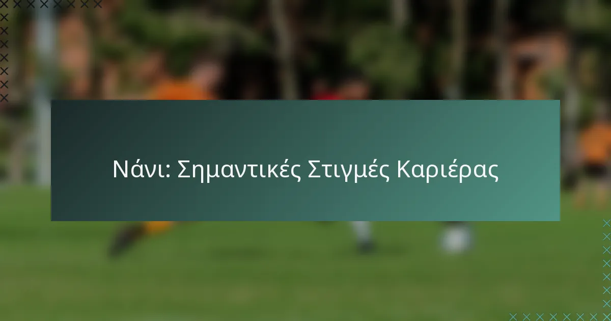 Ο Νάνι, μια εξέχουσα φιγούρα στο ποδόσφαιρο, έχει συγκεντρώσει πολλές διακρίσεις κατά τη διάρκεια της καριέρας του, επιδεικνύοντας το ταλέντο του τόσο σε συλλογικό όσο και σε διεθνές επίπεδο. Οι επιτυχίες του περιλαμβάνουν μεγάλους τίτλους συλλόγων, νίκες σε διεθνή τουρνουά και ατομικά βραβεία που αναδεικνύουν τις εξαιρετικές του ικανότητες στο γήπεδο.